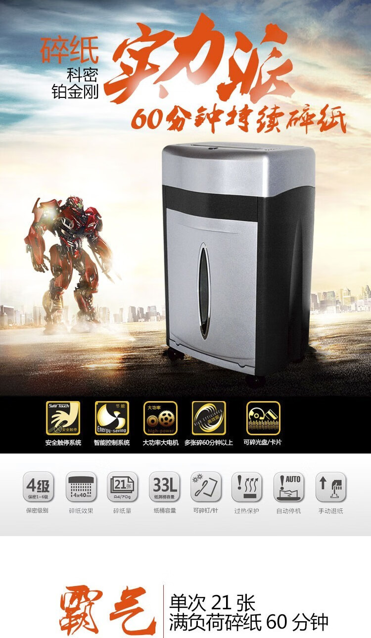 科密/Comet 鉑金剛 碎紙機 科密鉑金剛碎紙機 單次21張 33L大容量多功能 可碎卡 光盤 書針 連續碎紙60分鐘大功率商用辦公